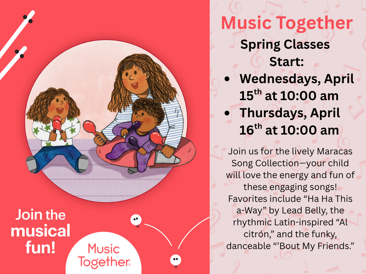 Music Together Spring Classes 10:00 am Starting Wednesdays, April 15th, and Thursdays, April 16th